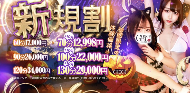 | 成田駅周辺限定(60分) | 16,000円(交通費、指名料込み) |