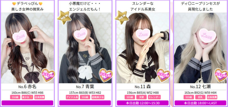 続いて、『BIG LOVE』は制服美少女系コスプレのお店。年齢の表記こそありませんが、10代~20代の若い子が中心です。