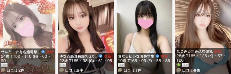口コミ数も多く、信用できそうで、女の子に関しても好印象の子が多数いる様です。