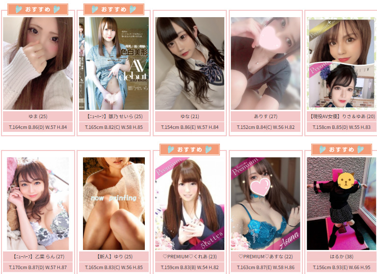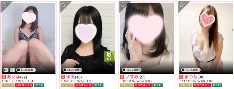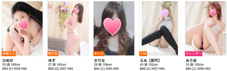「マジメな女の子の秘密のアルバイト」がキャッチフレーズ。そのとおり、現役JDや医療事務・美容師など、デリヘルとは縁がなさそうな、真面目な雰囲気の子ばかりです。