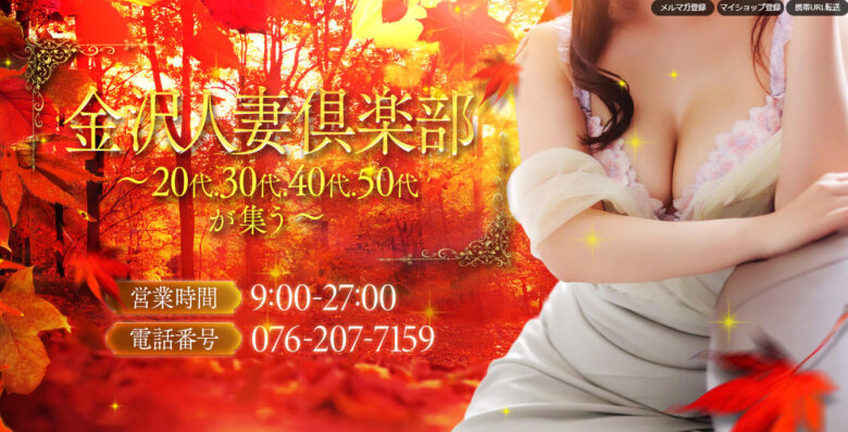 金沢のおすすめデリヘル3位『金妻』は、地元の美女妻が多数在籍しています。