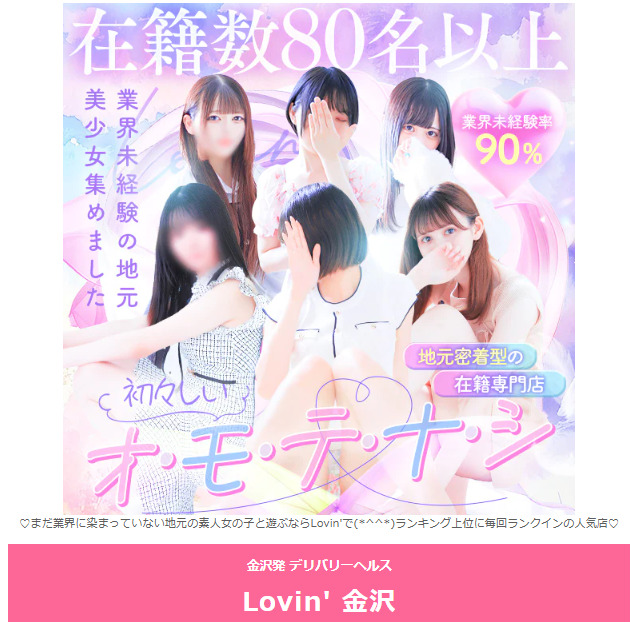 金沢のおすすめデリヘル2位『ラヴィン金沢(Lovin’金沢)』です。