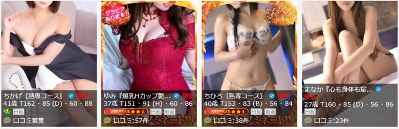 中でも特徴的なのが「金妻熟専コース」です。40代の熟れた経験豊かな大人の奥様と遊べます。熟女好きには待望のプランでしょう。