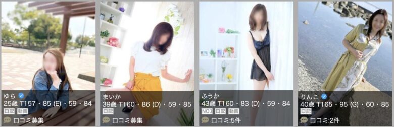 ジャンルとしては、人妻・熟女系、素人系、ぽっちゃり系などが多く、倉敷市などの店舗から派遣されるため、選択肢は実質的に倉敷市場と共通となっています。
