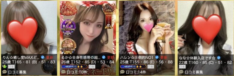 「本番情報」や「キャストのレベル」、「サービスの質」、「接客対応」なども加味したランキングとなっています。以下は今回紹介するお店のリストです。