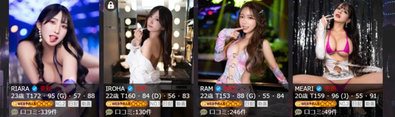 女の子の年齢層 | 10代後半~20代 | 30代~60代 | 20代~40代 | 10代後半~20代 | 10代後半~20代 | 10代後半~20代 | 20代~40代 | 10代後半~20代 | 10代後半~20代 | 10代後半~20代 | 10代後半~30代 |