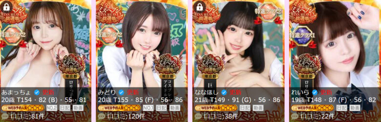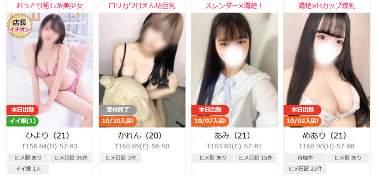 公式ホームページではほとんどの子が顔出しをしており、若い素人系の可愛い女の子が揃っています。