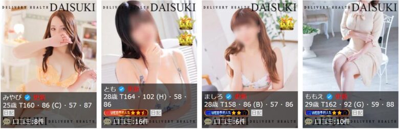 熊代の本番が期待できるデリヘル、1つ目は『ダイスキ』です。
