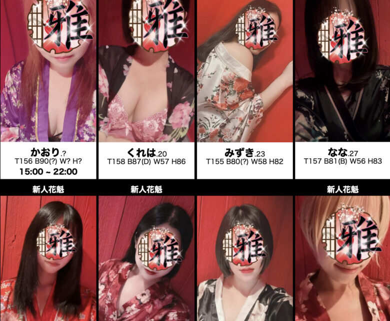 『雅(みやび)』は、20代の若い子が中心で、可愛い系から綺麗系まで幅広い女の子が揃っています。