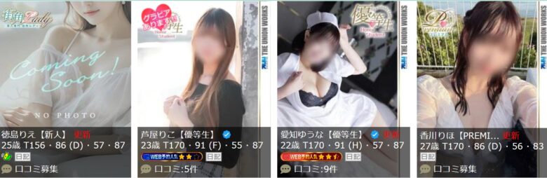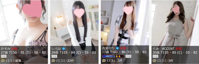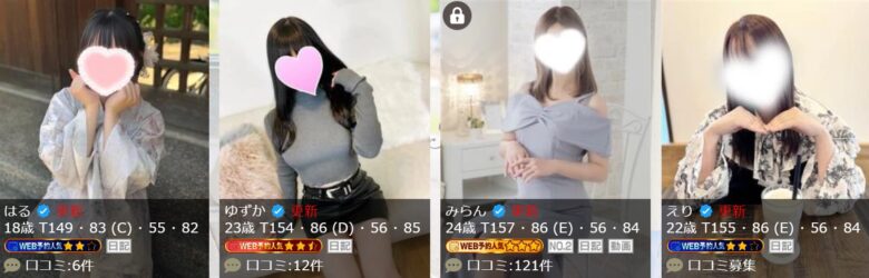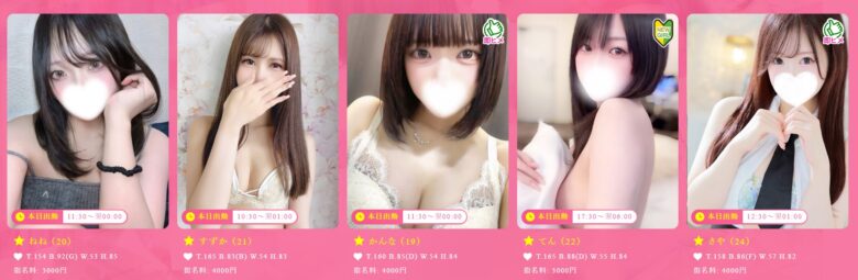 利用者口コミやネット情報では、「ハーフ系やセクシーな雰囲気の子が指名できる」「写真より実際の方がタイプだった」といった声が散見されますが、反対に「モデル級のルックスではない子も多い」「外見重視の人には好みが分かれる」という意見もあるため、若干のばらつき感は覚悟した方がよさそうです。