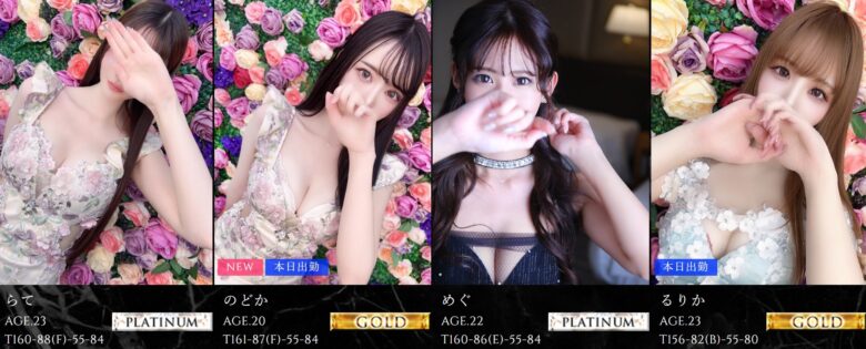 公式写真やサイトの在籍リストを見ると、Fカップ以上のキャストも多数在籍しており、ビジュアル・スタイル重視の人も楽しめる構成となっています。