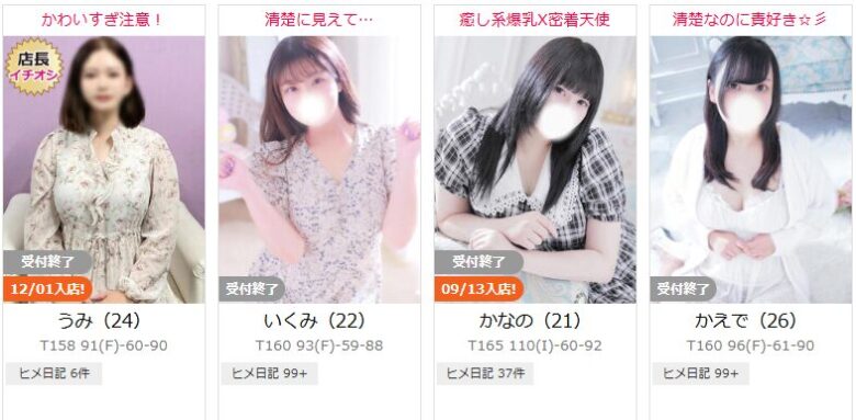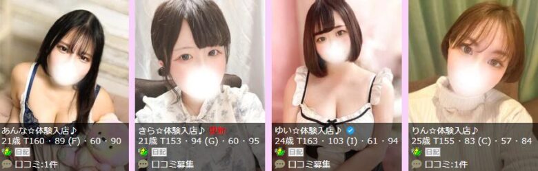 未経験の清楚系や金髪ギャル、ぴちぴちの18歳など、個性豊かな女の子たちが在籍。