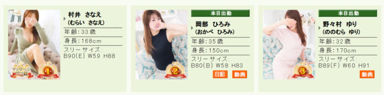 「本番情報」や「キャストのレベル」、「サービスの質」、「接客対応」なども加味したランキングとなっています。以下は今回紹介するお店のリストです。