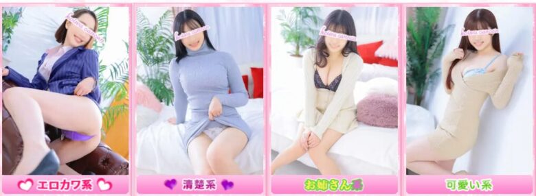 かわいい系からセクシー系まで様々な女の子が在籍しているので好みの子がきっと見つかるはず!