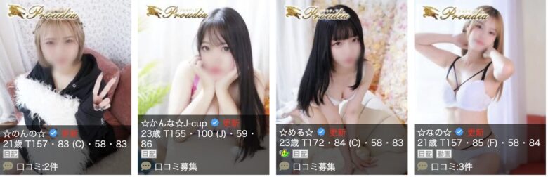 プラウディアは10代後半~30代の幅広い年齢層が在籍しており、清楚系・癒し系・モデル系・お姉様系・AV女優