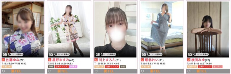 | 女の子の年齢層 | 10代・20代・30代・40代 | 30代・40代・50代・60代 | 20代・30代・40代 | 10代・20代・30代 | 20代・30代・40代 | 10代・20代 | 10代・20代・30代・40代 | 20代・30代・40代 | 10代・20代・30代・40代 |